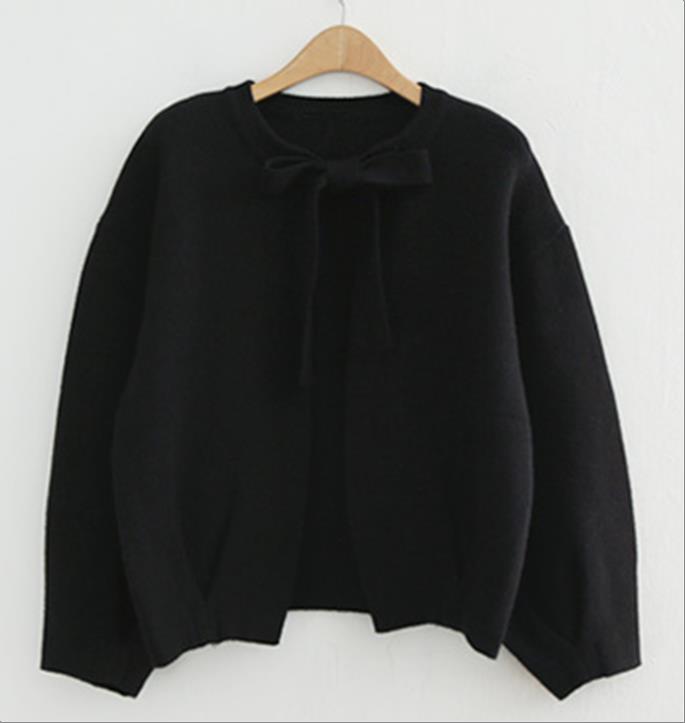 韩国官网款女装-上衣리본가디건