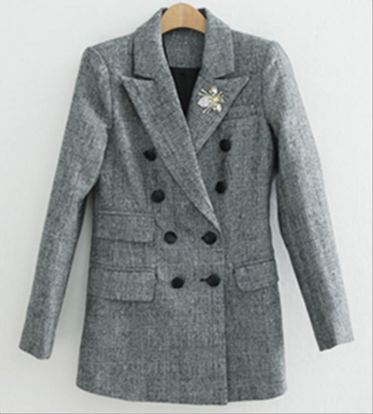 韩国官网款女装-外套체크 더블 자켓