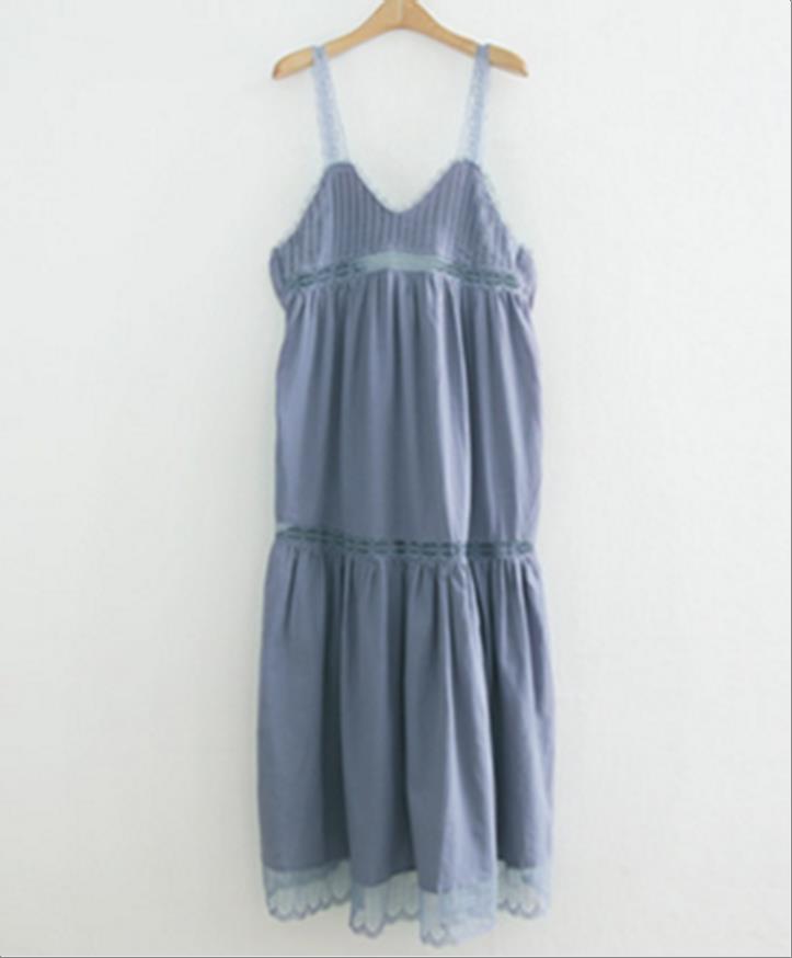韩国官网款女装-裙子끈 면롱 원피스