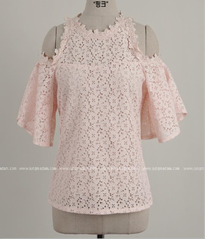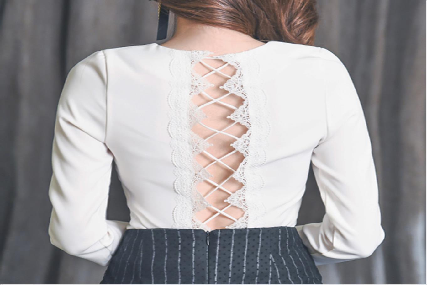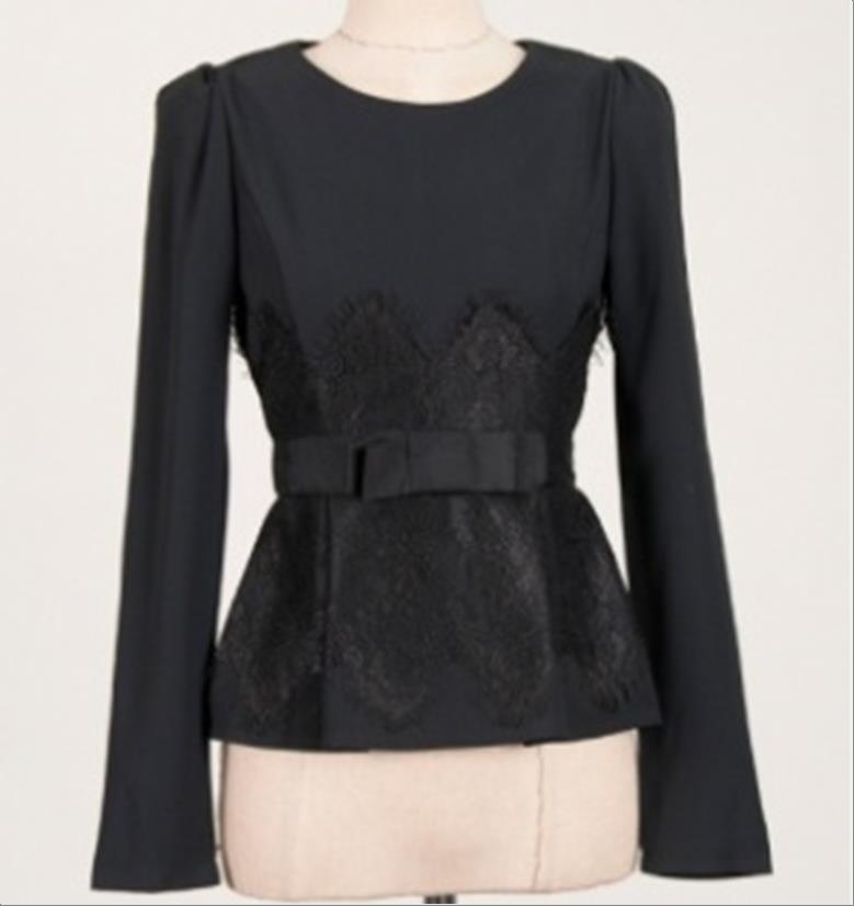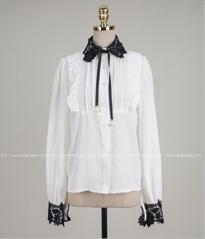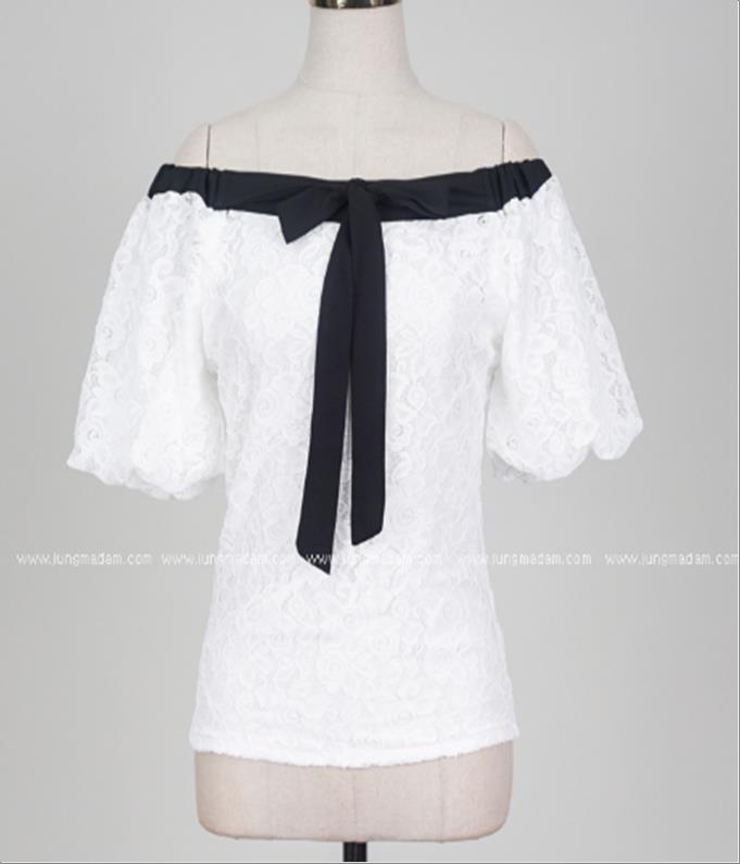 韩国官网款女装-上衣리본레이스