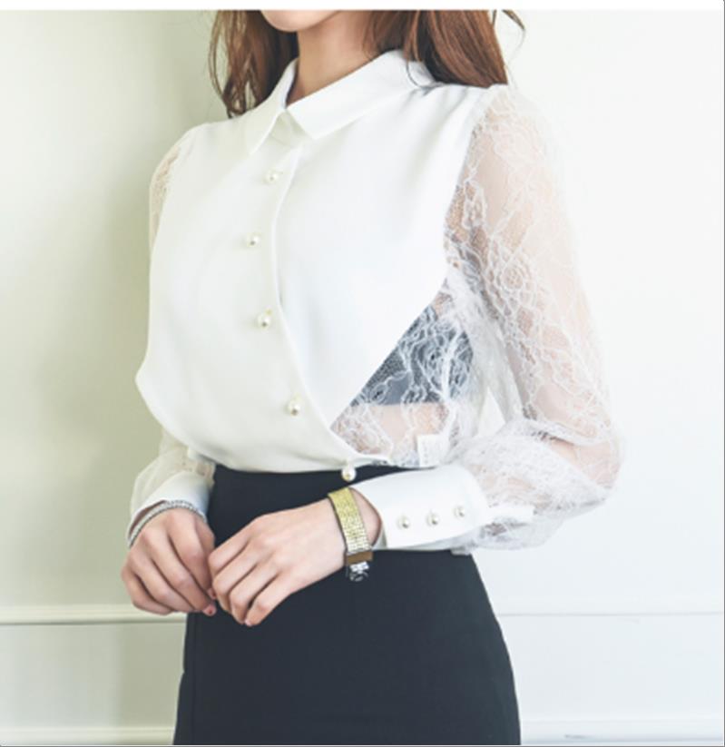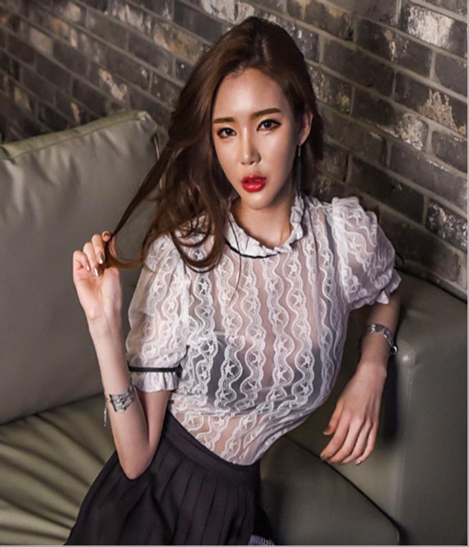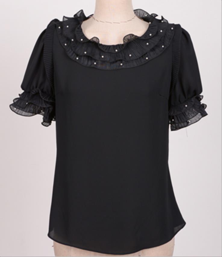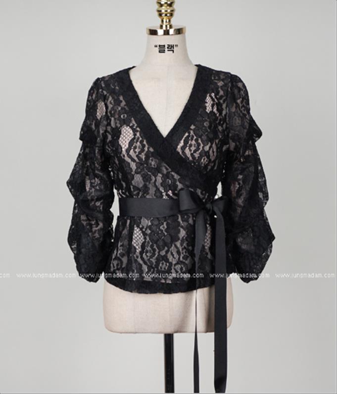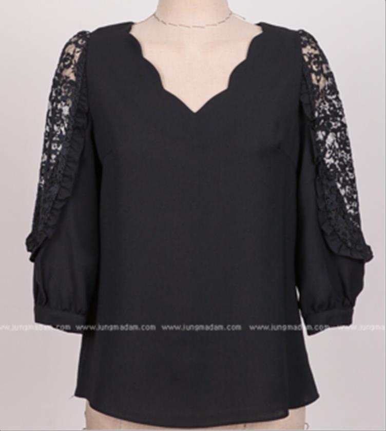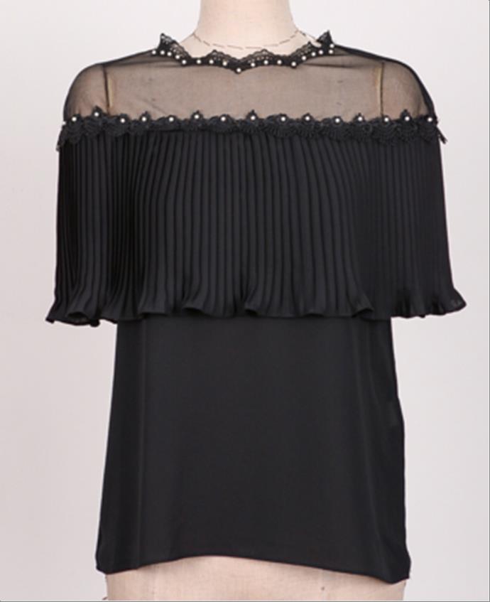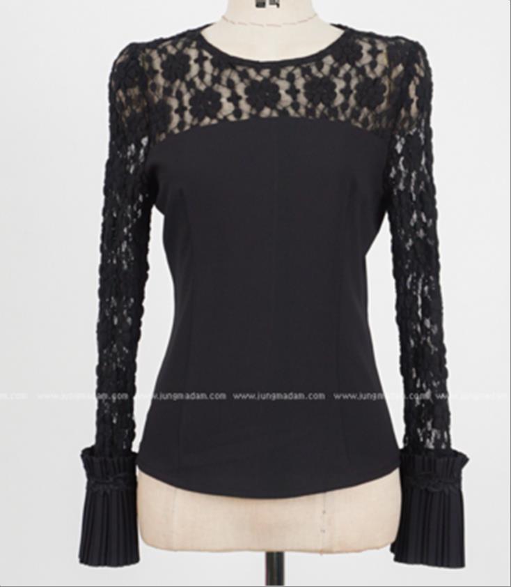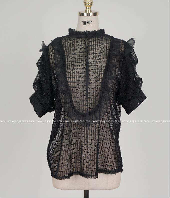 韩国官网款女装-上衣프릴망사BL