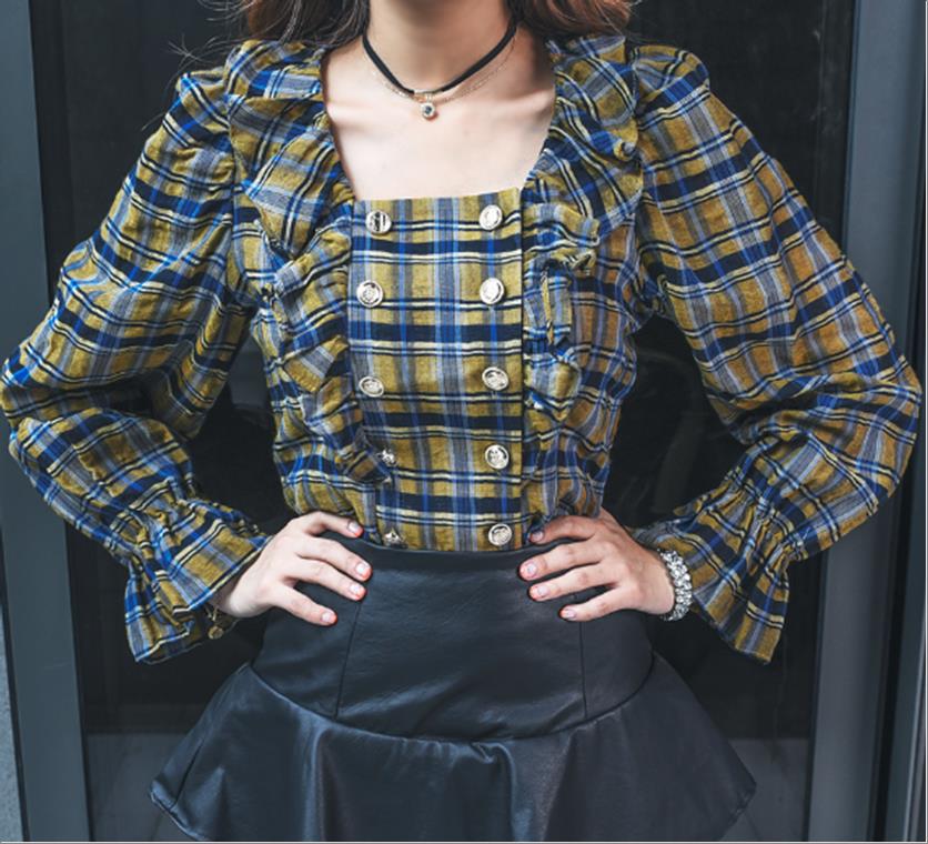 韩国官网款女装-上衣더블체크BL