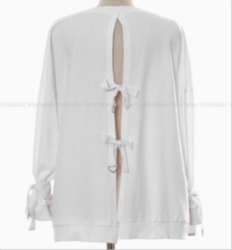 韩国官网款女装-上衣뒷리본티