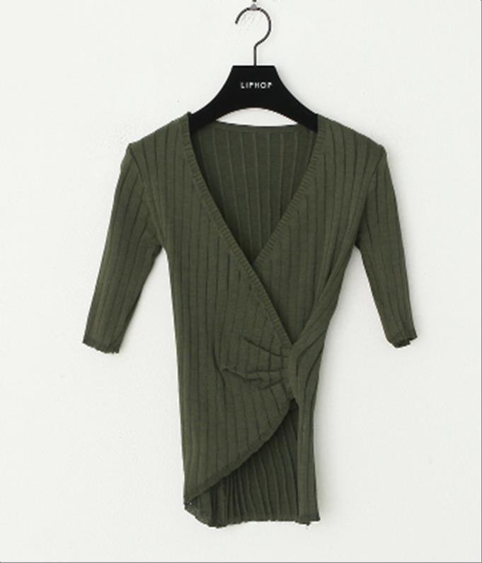 韩国官网款女装-上衣반팔랩니트