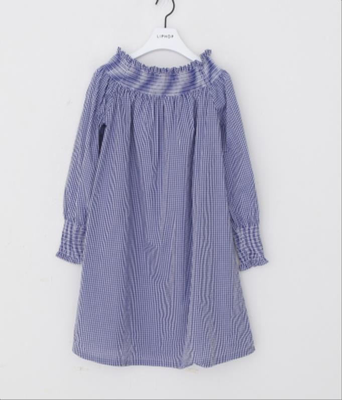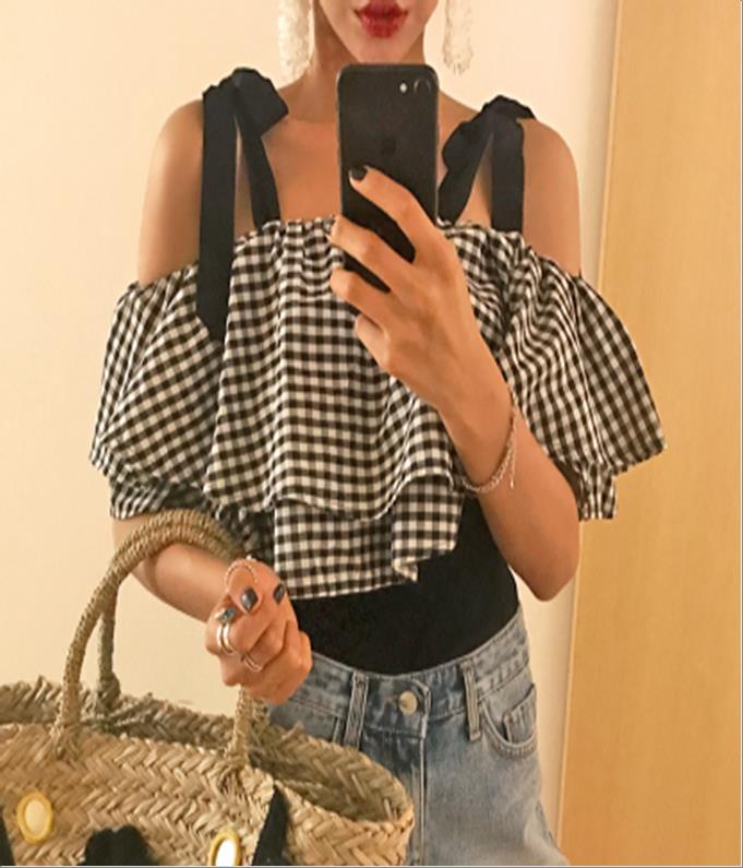 韩国官网款女装-上衣체크오프숄더OPS