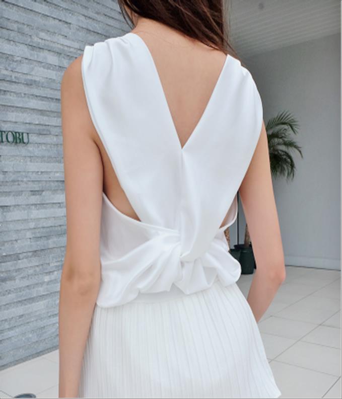 韩国官网款女装-上衣꼬임공단나시