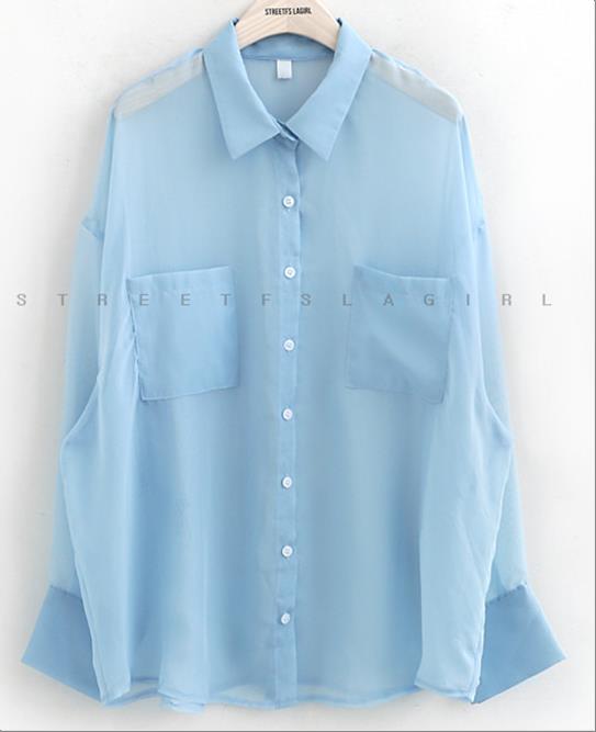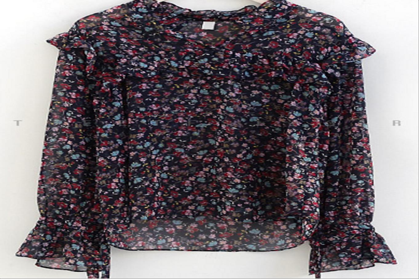 韩国官网款女装-上衣쉬폰플릴블라우스
