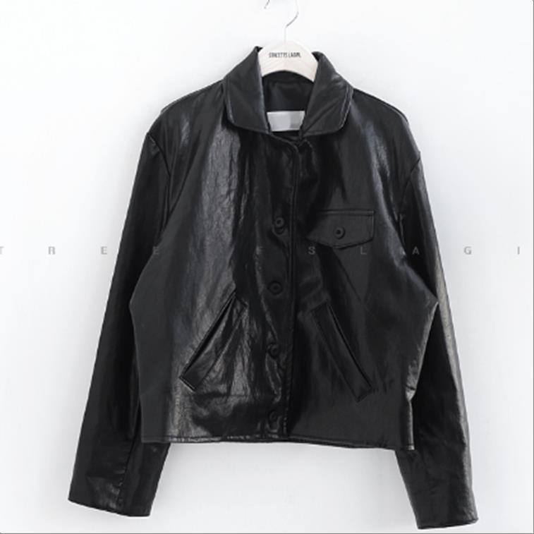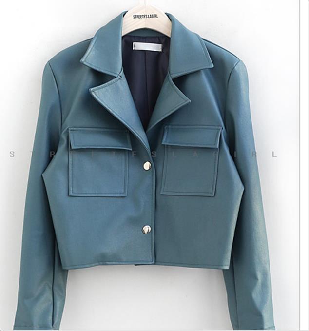 韩国官网款女装-外套미니레더자켓