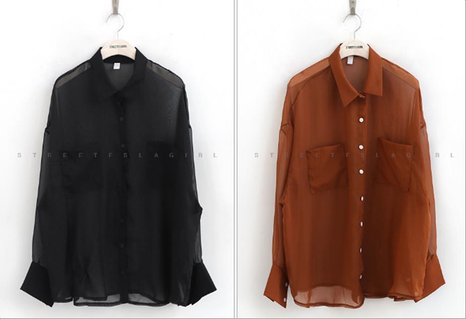 韩国官网款女装-上衣핀탁시스루