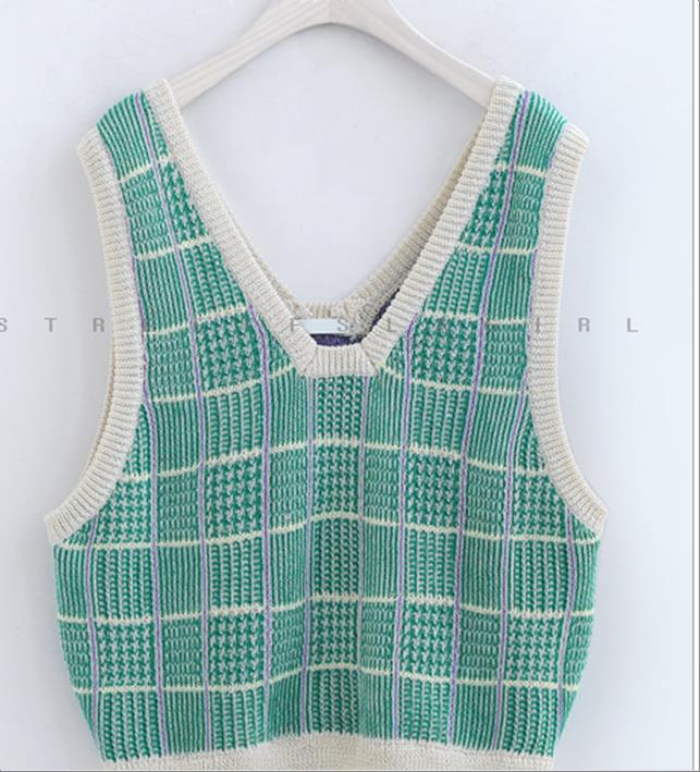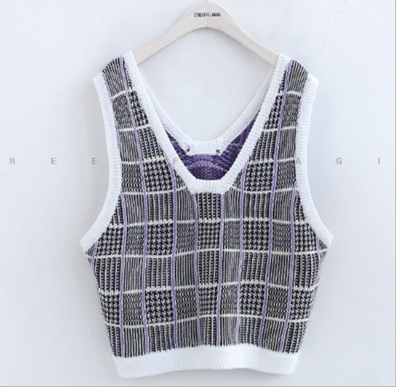 韩国官网款女装-上衣체크숏VEST