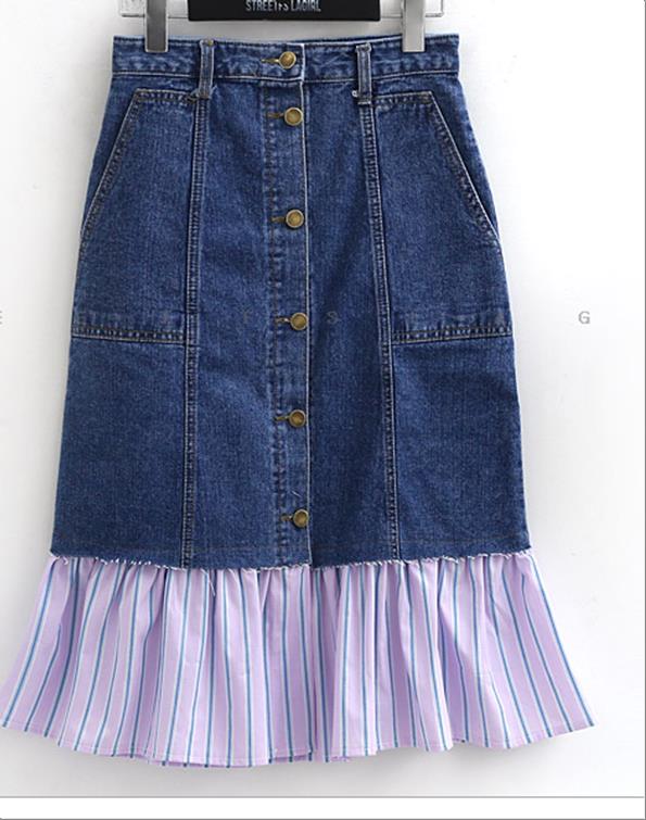 韩国官网款女装-裙子스트라이프청스커트