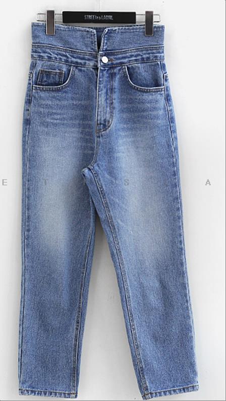 韩国官网款女装-裤子커팅버튼데님