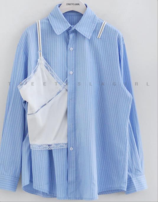 韩国官网款女装-上衣스트라이프남방