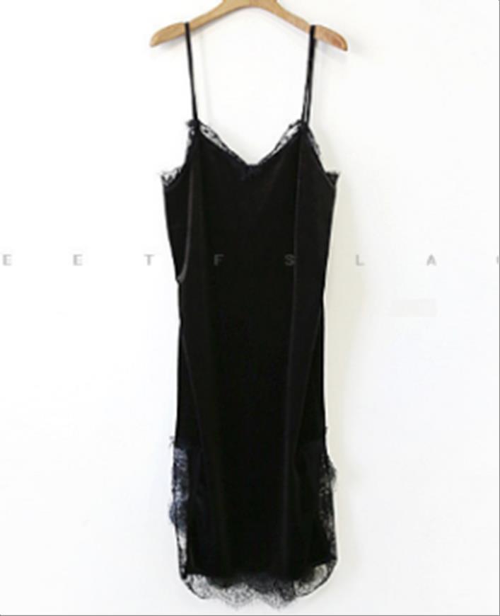 韩国官网款女装-上衣#벨벳레이스 원피스