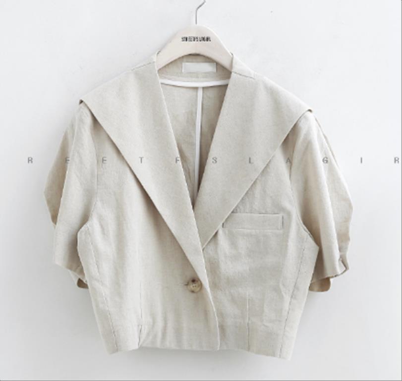 韩国官网款린넨반팔자켓