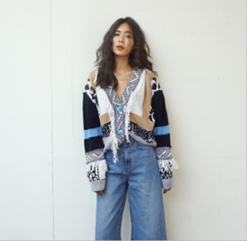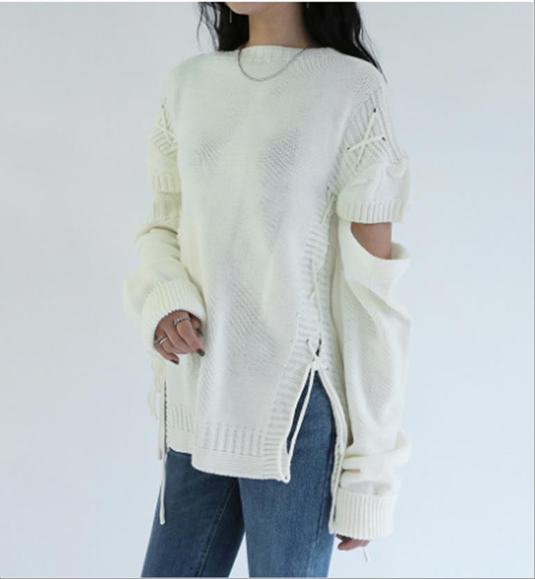 韩国官网款女装-上衣보카시박시니트