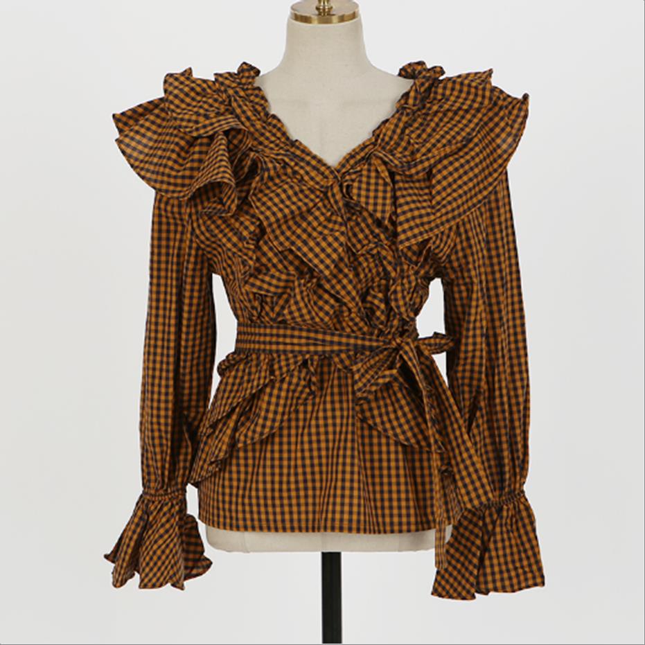 韩国官网款체크잔프릴BL