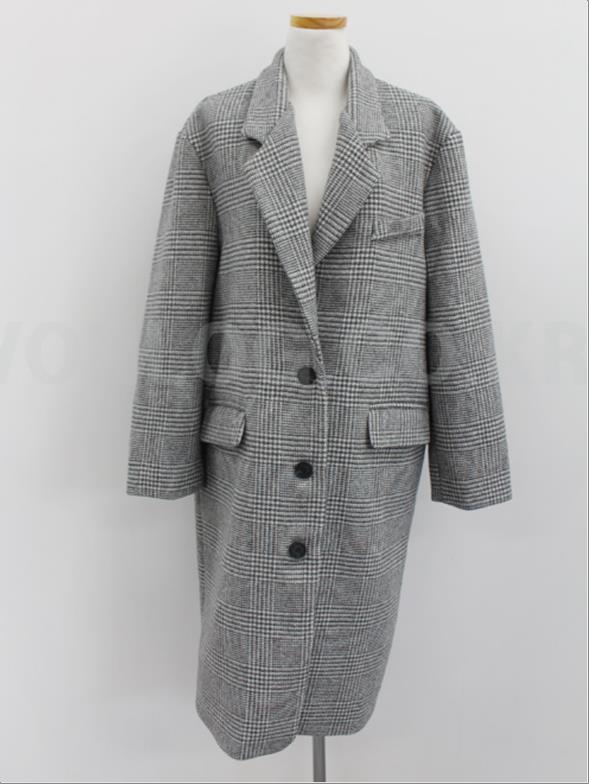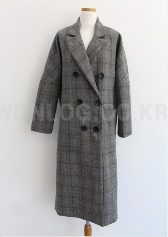 韩国官网款女装-外套체크롱코트