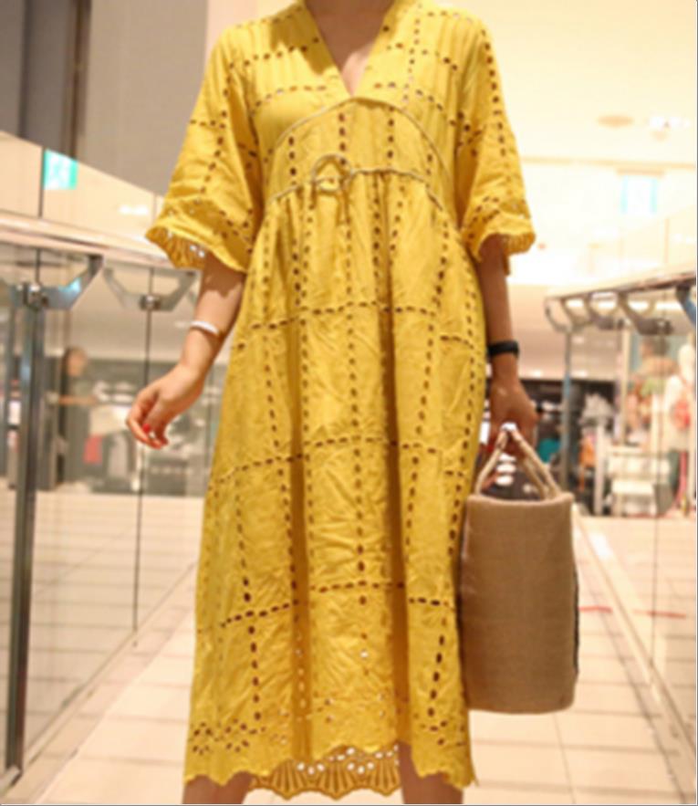 韩国官网款女装-裙子V펀칭원피스