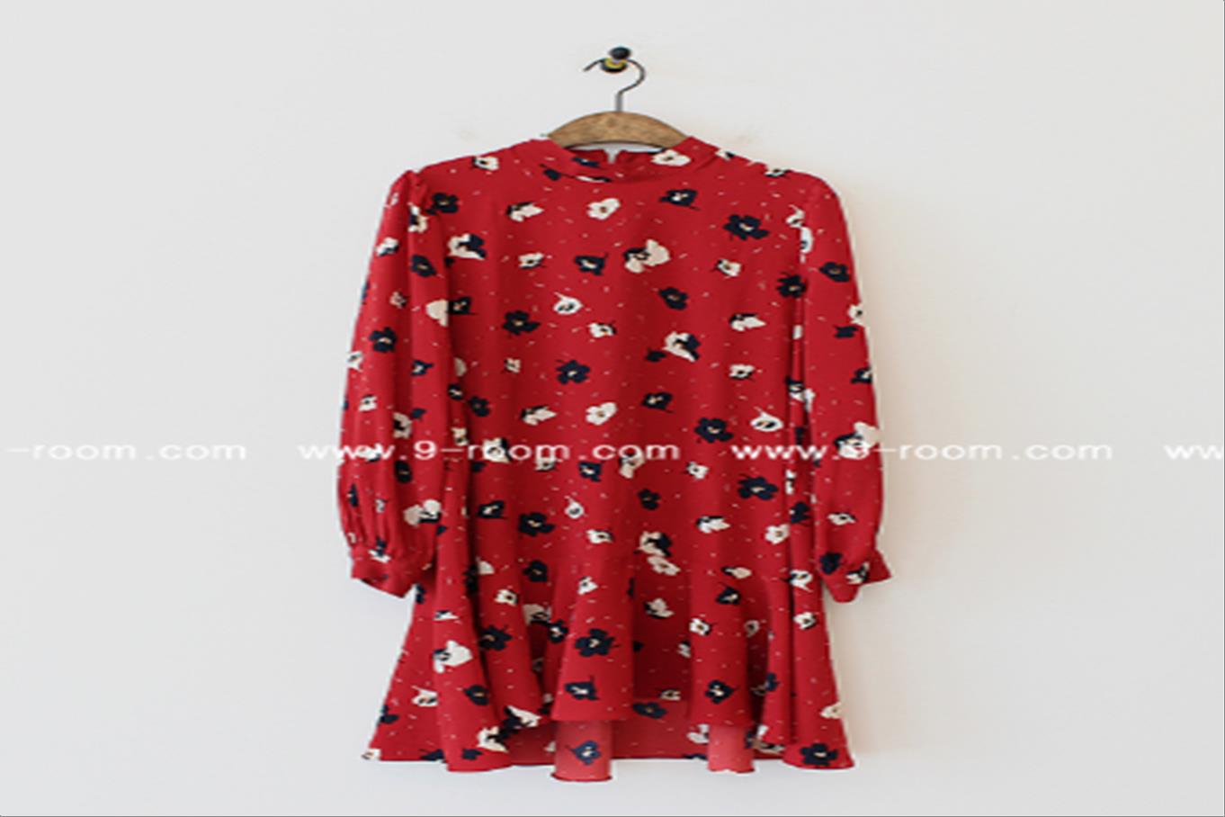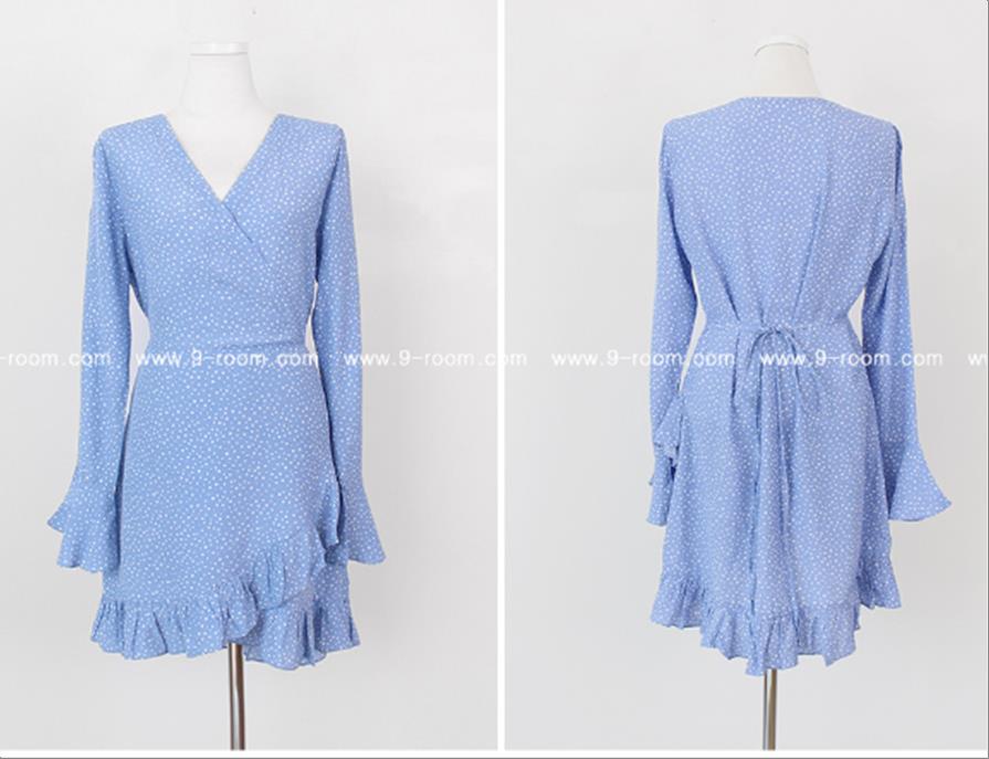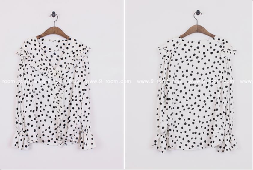 韩国官网款女装-上衣도트프릴BL