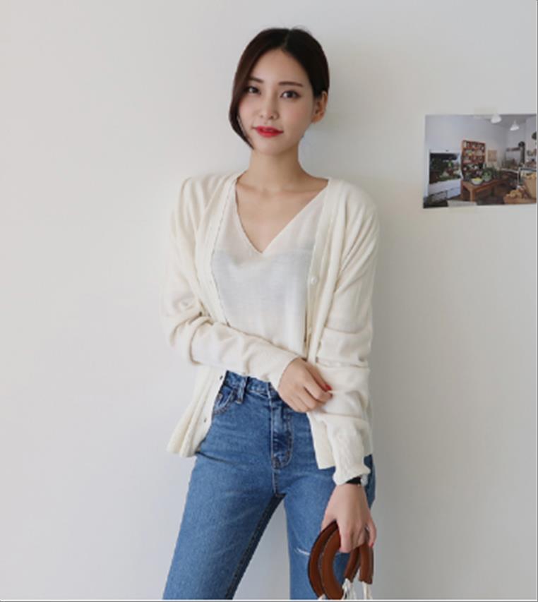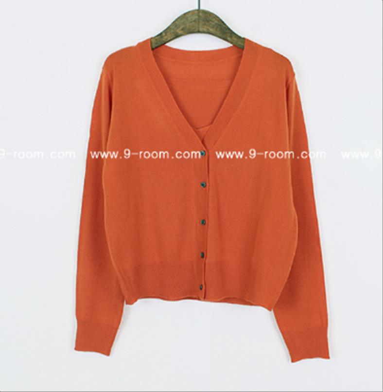 韩国官网款女装-上衣오픈V니트