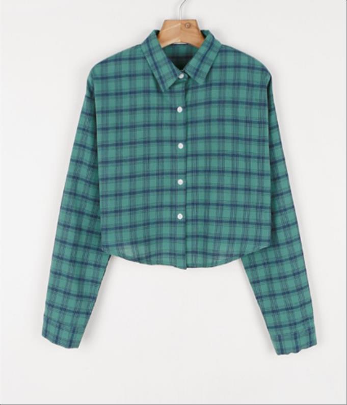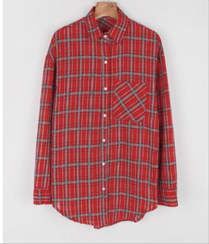 韩国官网款女装-上衣체크롱셔츠