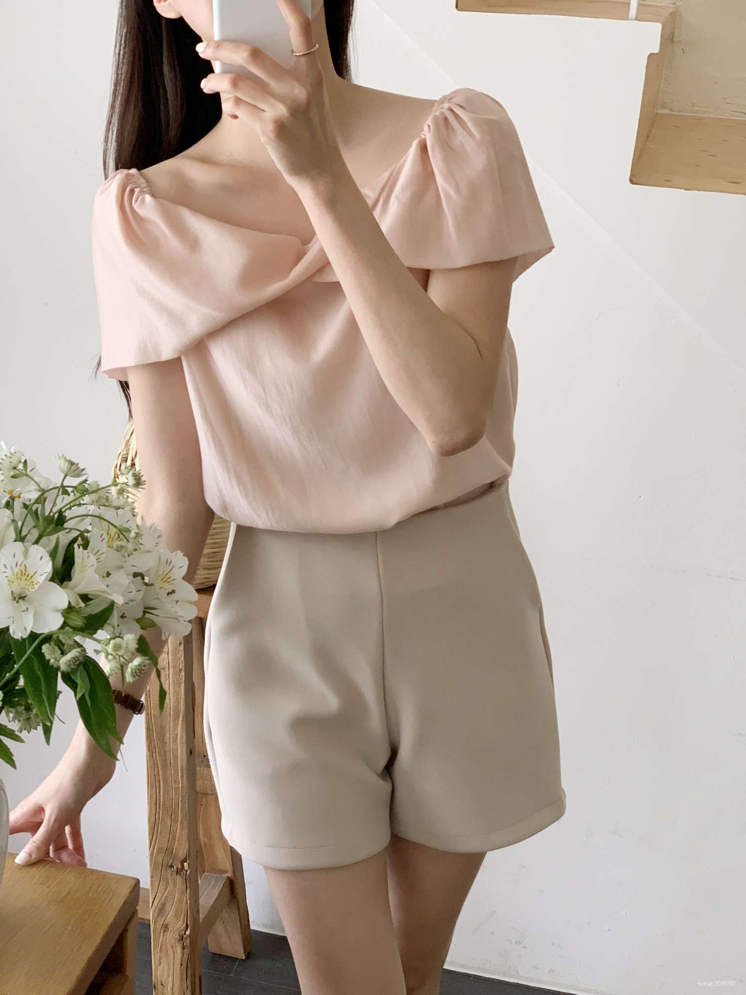 크림 블라우스