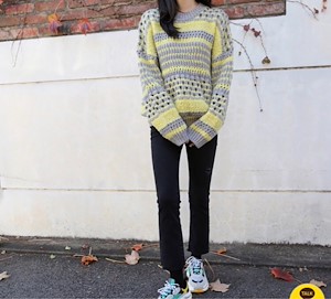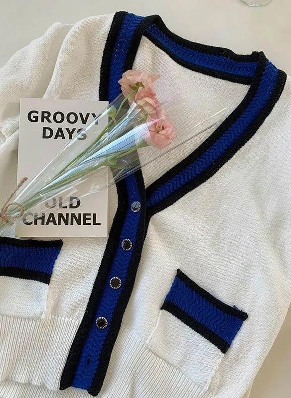 배색가디건