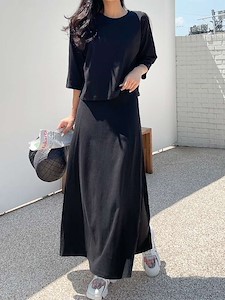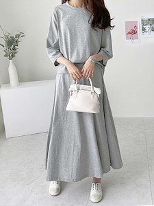 (7부 치마 세트)치마 스커트 맨투맨 세트 홈웨어 잠옷 트레이닝 트임 에이라인 티셔츠1