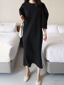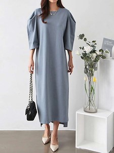 (7부 퍼프 원피스)가을 신상 퍼프 셔링 주름 롱 원피스 홈웨어
