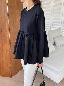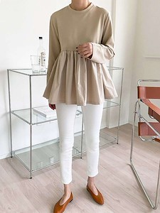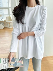블랑셔링티)셔링 주름 훌 긴팔 티셔츠 홈웨어 잠옷
