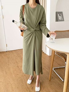 (긴팔꼬임원피스)가을신상 롱 트임 셔링 원피스 쮸리 홈웨어 잠옷