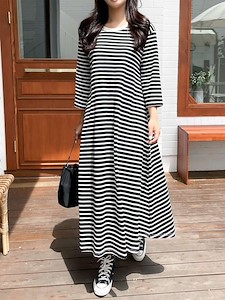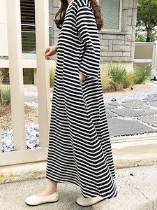(7부단가라원피스)가을 신상 스트라이프 롱 a라인 훌 원피스 홈웨어 잠옷1