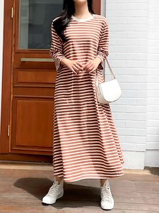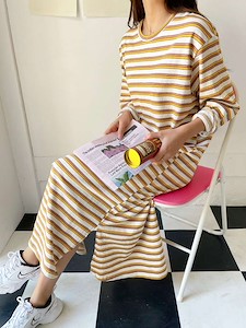 (7부단가라원피스)가을 신상 스트라이프 롱 a라인 훌 원피스 홈웨어 잠옷