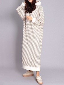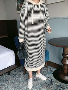 (베베후드원피스)가을 신상 단가라 스트라이프 후드 롱 원피스 홈웨어 잠옷