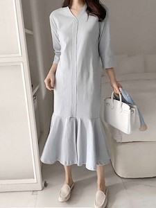 (켈리 7부 원피스)가을 신상 머메이드 롱 트임 원피스 홈웨어 잠옷