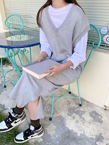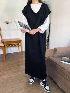 베스트원피스)나시 조끼 레이어드 롱 박시 빅 원피스 홈웨어 잠옷