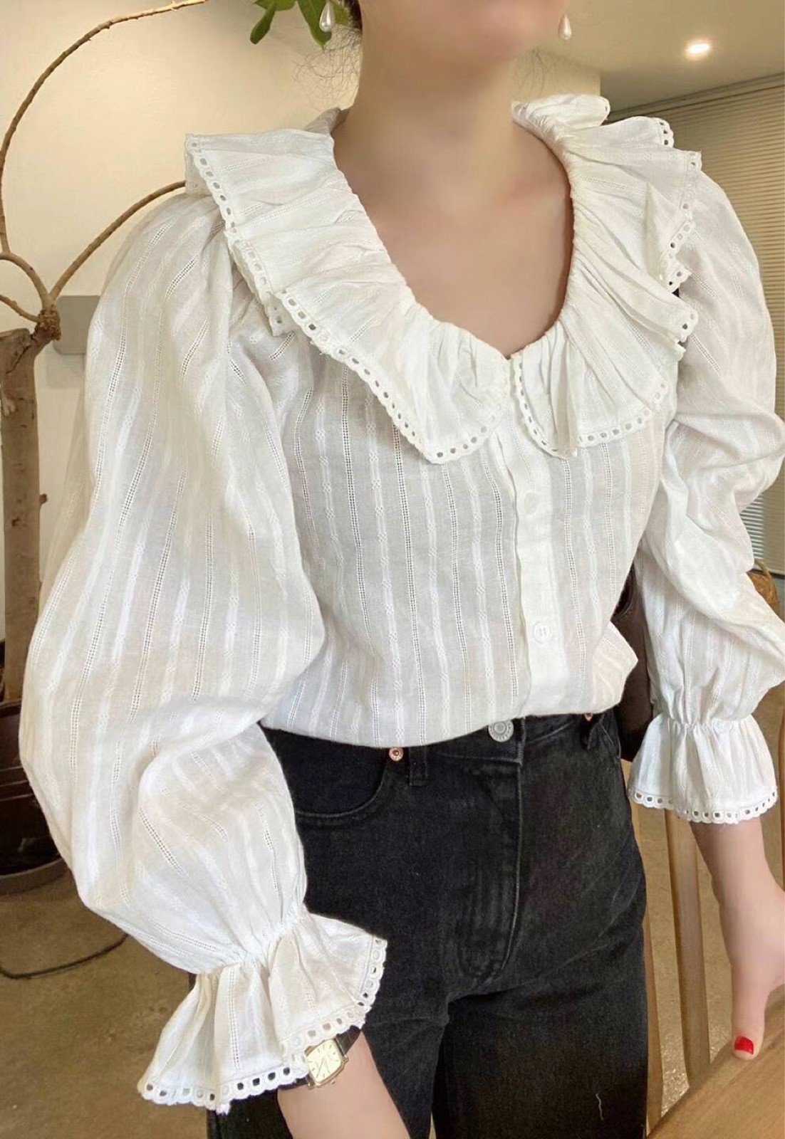 케이트 레이스 프릴 카라 블라우스
