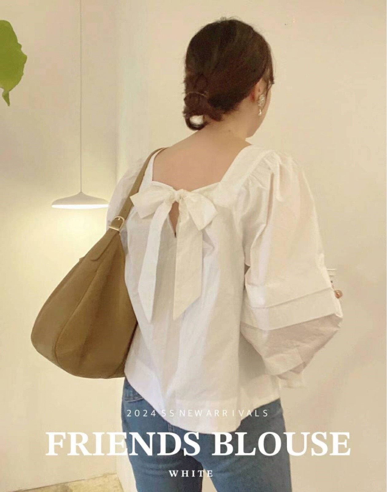앤앤체크 프릴 카라 셔링 블라우스