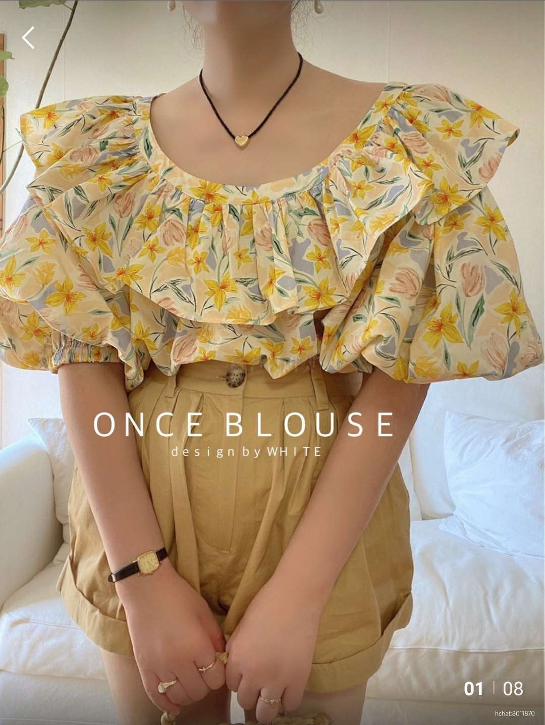 위듀 쉬폰 셔링 카라 블라우스.