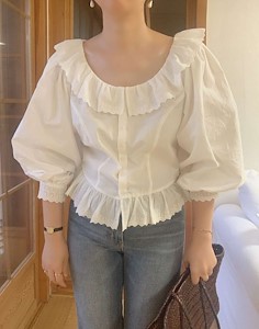 달리아 레이스 카라 프릴 블라우스