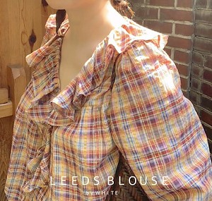리즈 체크 프릴 카라 블라우스