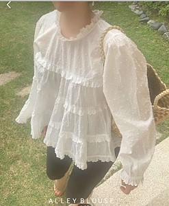 앨리 도트 자수 레이스 캉캉 블라우스