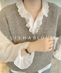 앨리샤 카라 레이스 프릴 도트자수 블라우스