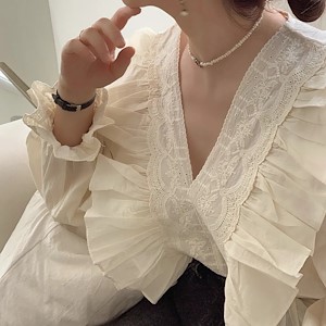 플라워 레이스 프릴 블라우스