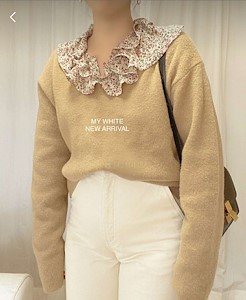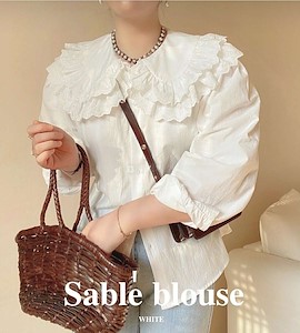 썸 레이스 이중카라 블라우스