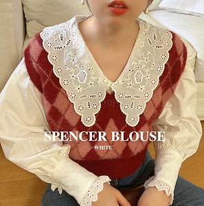 스펜서 자수 카라 블라우스