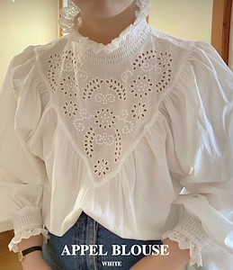 아펠 스모크 레이스 자수 블라우스