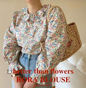 로라 플라워 셔링 이중카라 블라우스