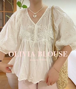올리비에 자수 레이스 블라우스